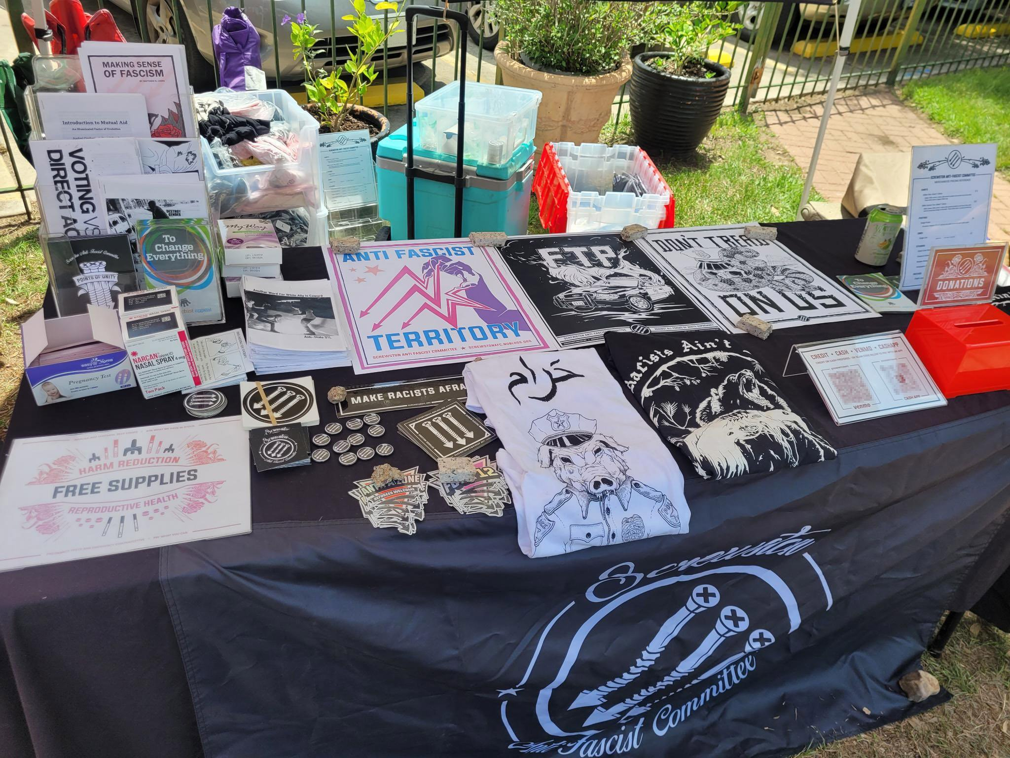 Screwston Antifa tabling at the San Antonio Anarchist Bookfair with extremist anti-government literature