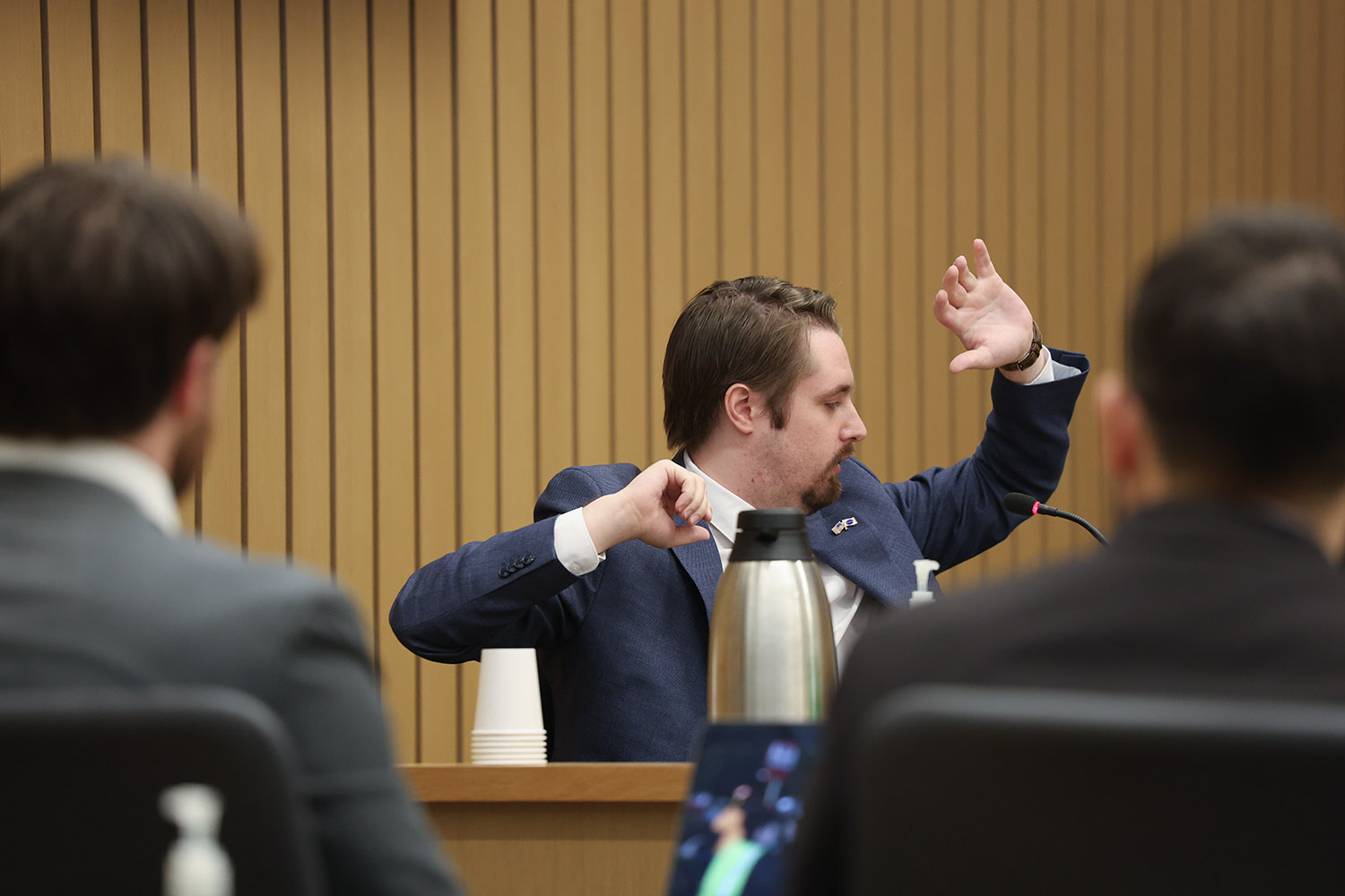 Nick Sortor testifies about being surrounded. Photo: Zane Sparling / Oregonian