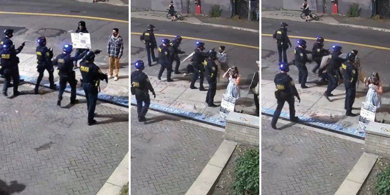 The Post Millennial captured video footage of the incident, which shows Plancarte-Benson being tackled to the ground by federal officers while resisting arrest. It took several officers from ICE and the Department of Homeland Security's Federal Protective Service (FPS) to take him into custody.